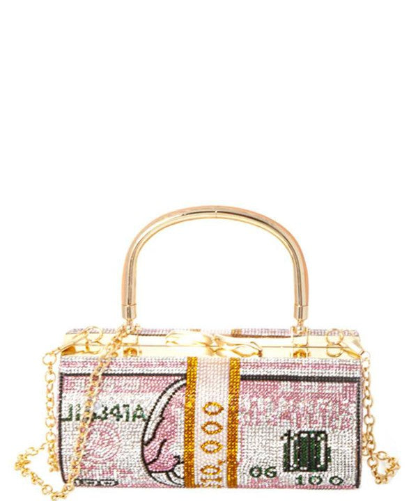 - Size: 8 * 2.25 * 4 Inch - Special fashion design money bag, with shining bling bling long chain. - This bag can crossbody for shopping. Also, can be evening bag for wedding party and banquet, which would be very special. - Great container for smart phone, lipsticks, and pressed powder.