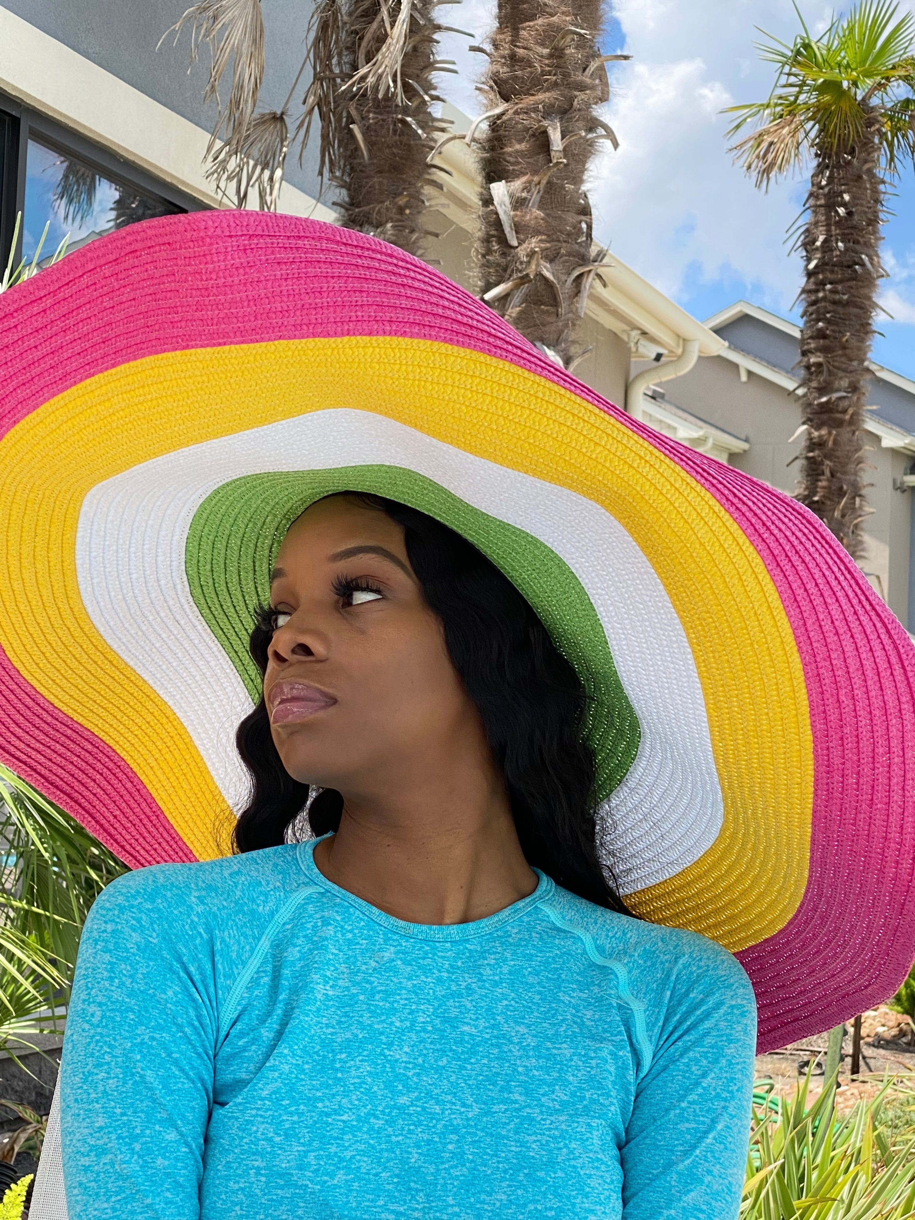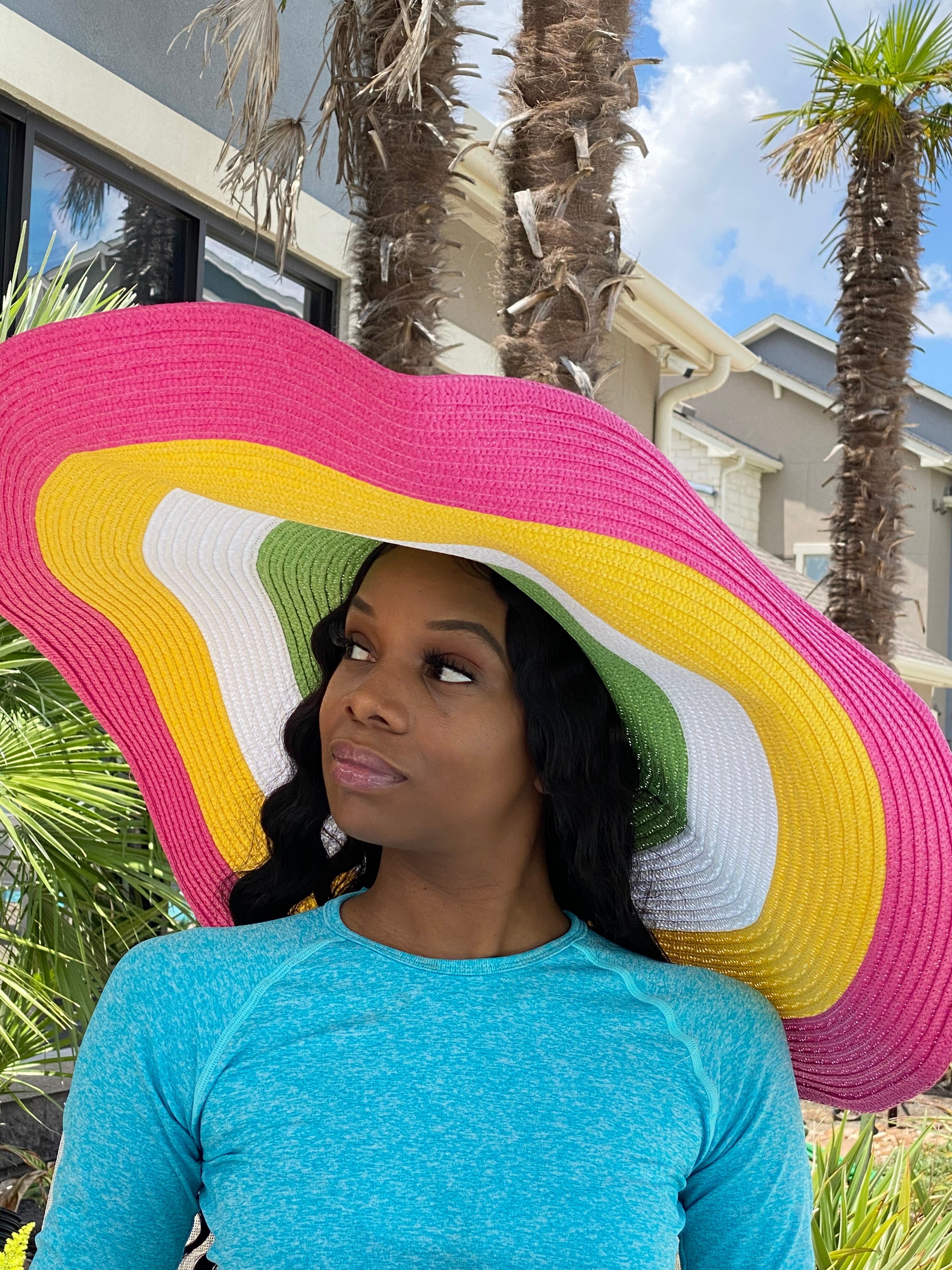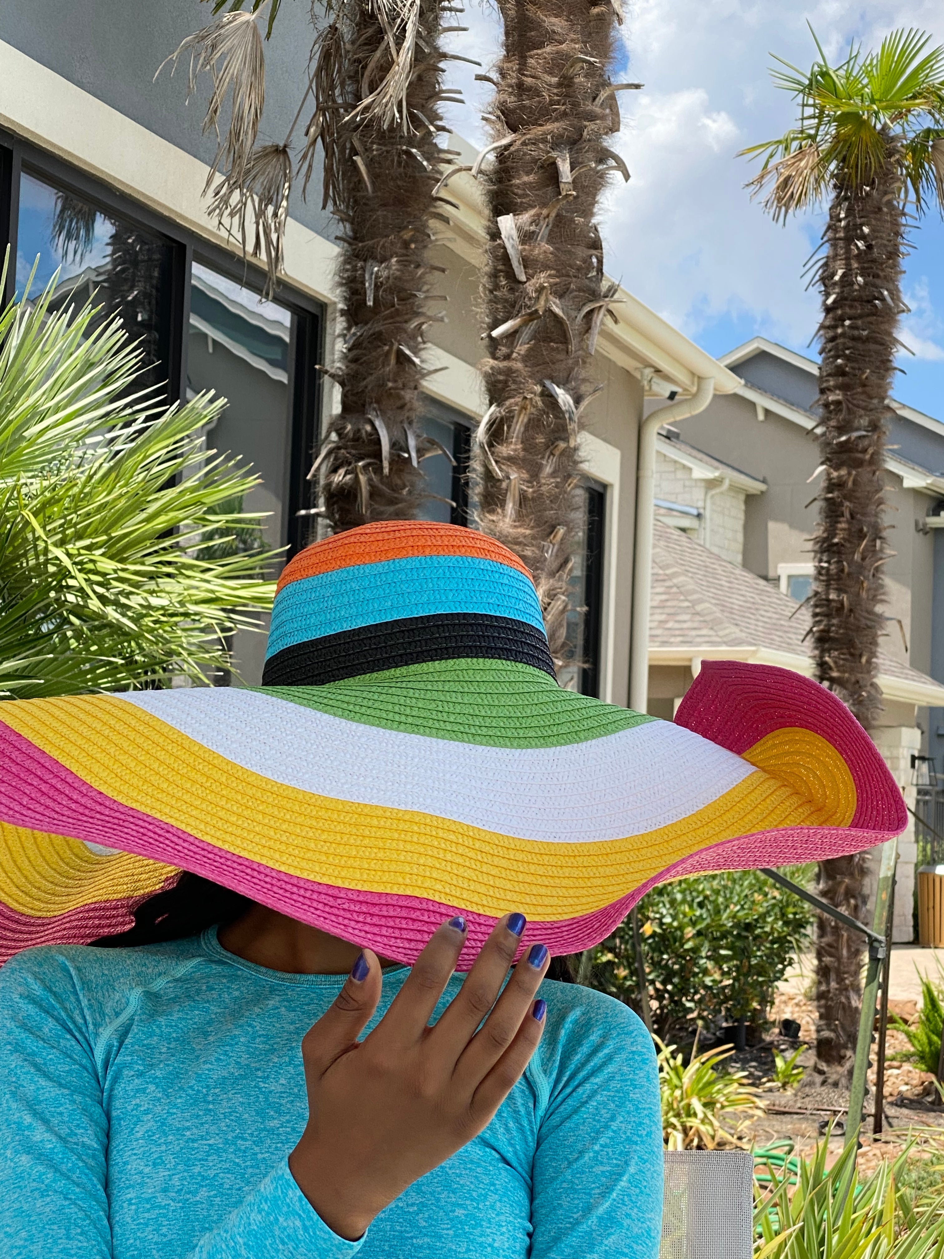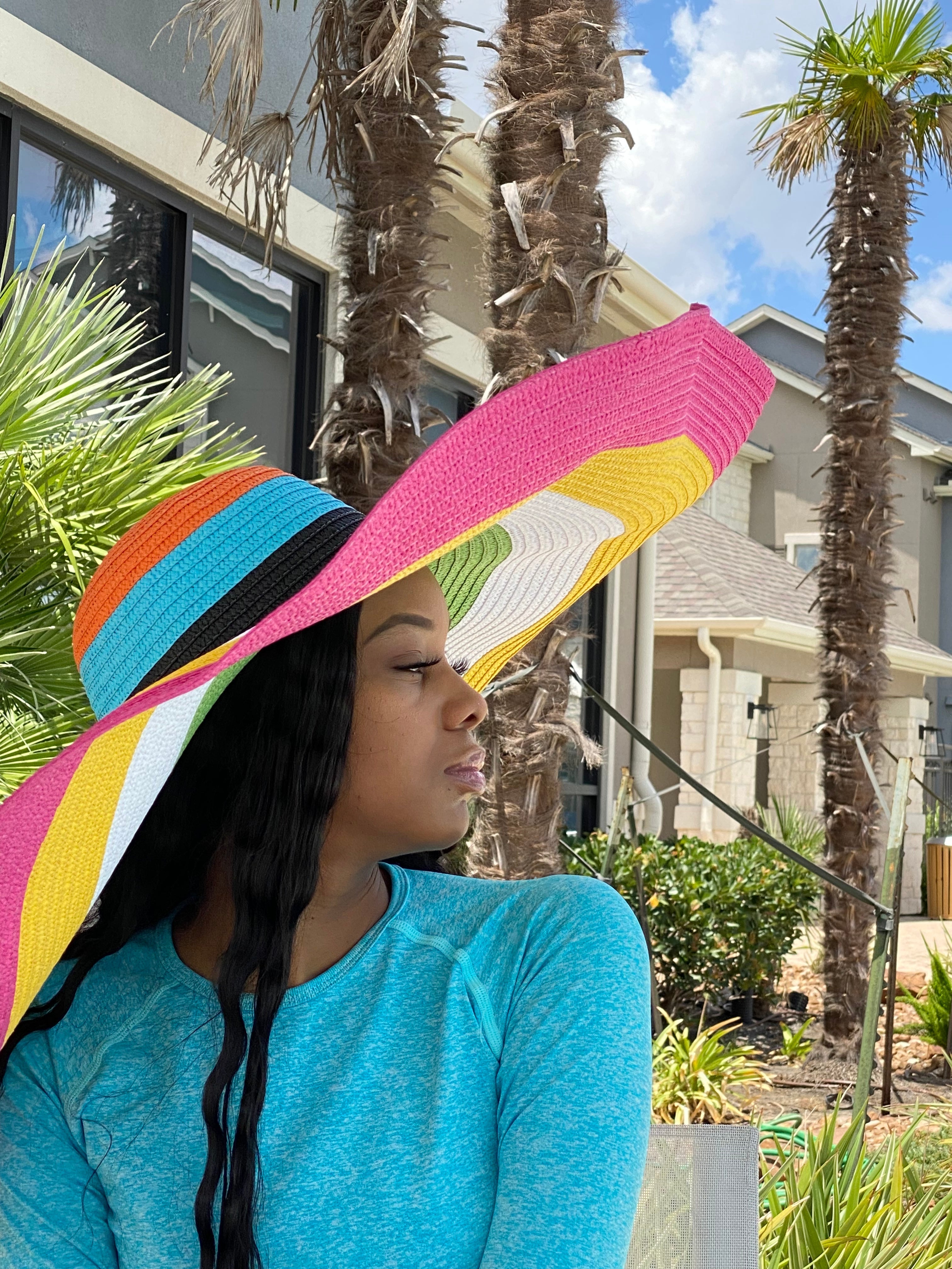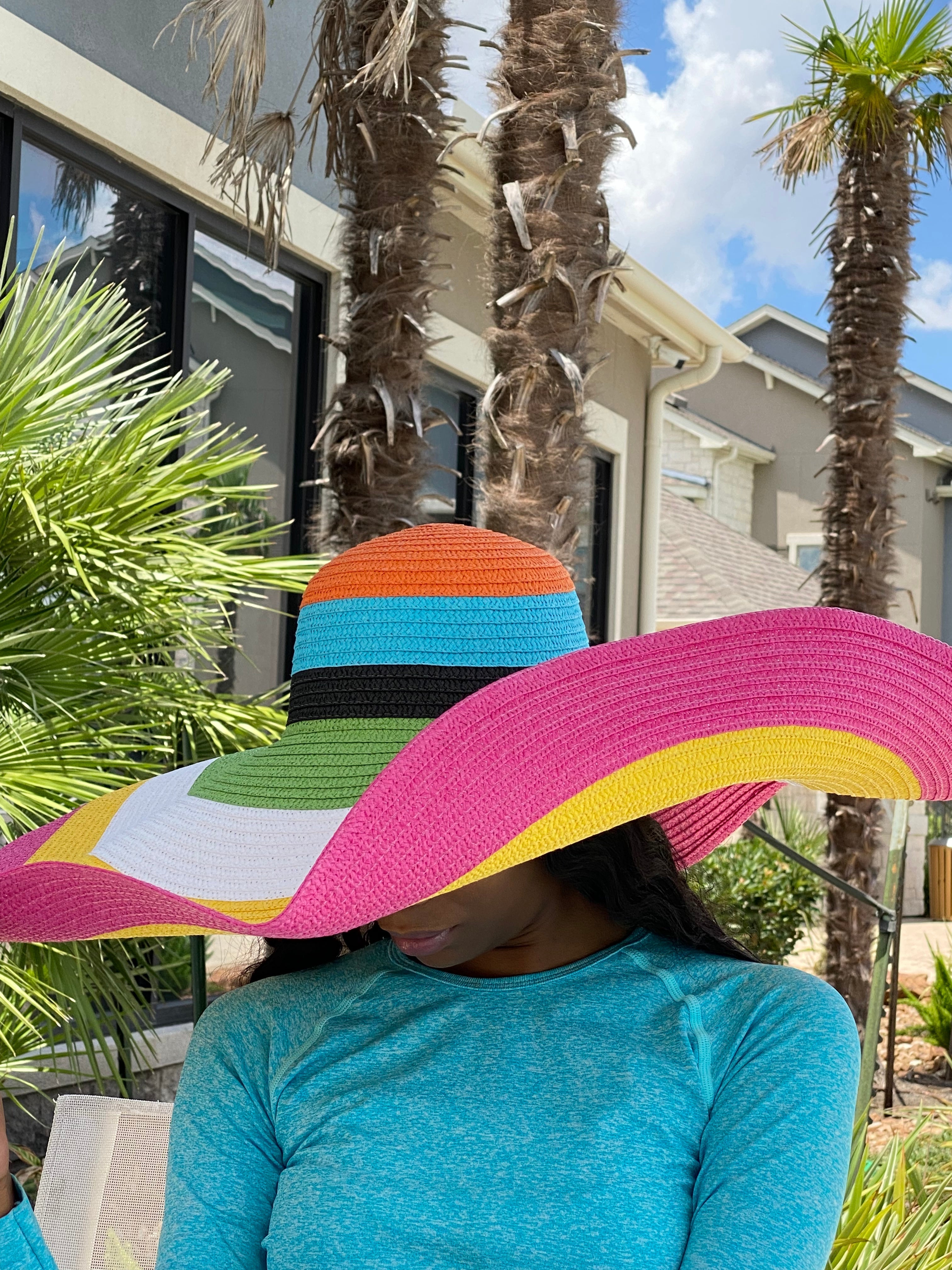 Product Description Accessorize any outfit with our most loved fashion hats. Make heads turn in this beautiful fashion multi colored wide summer sun hat.