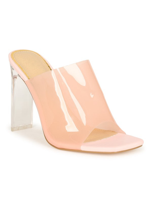 These gorgeous statement mules are a must have for every fashionista. Featuring a vibrant clear pvc detail and stacked heel for that sassy and classy look. Finished with a lightly padded insole and easy slide style. Material: PVC (man-made) Sole: Synthetic Measurement Heel Height: 4” (approx)