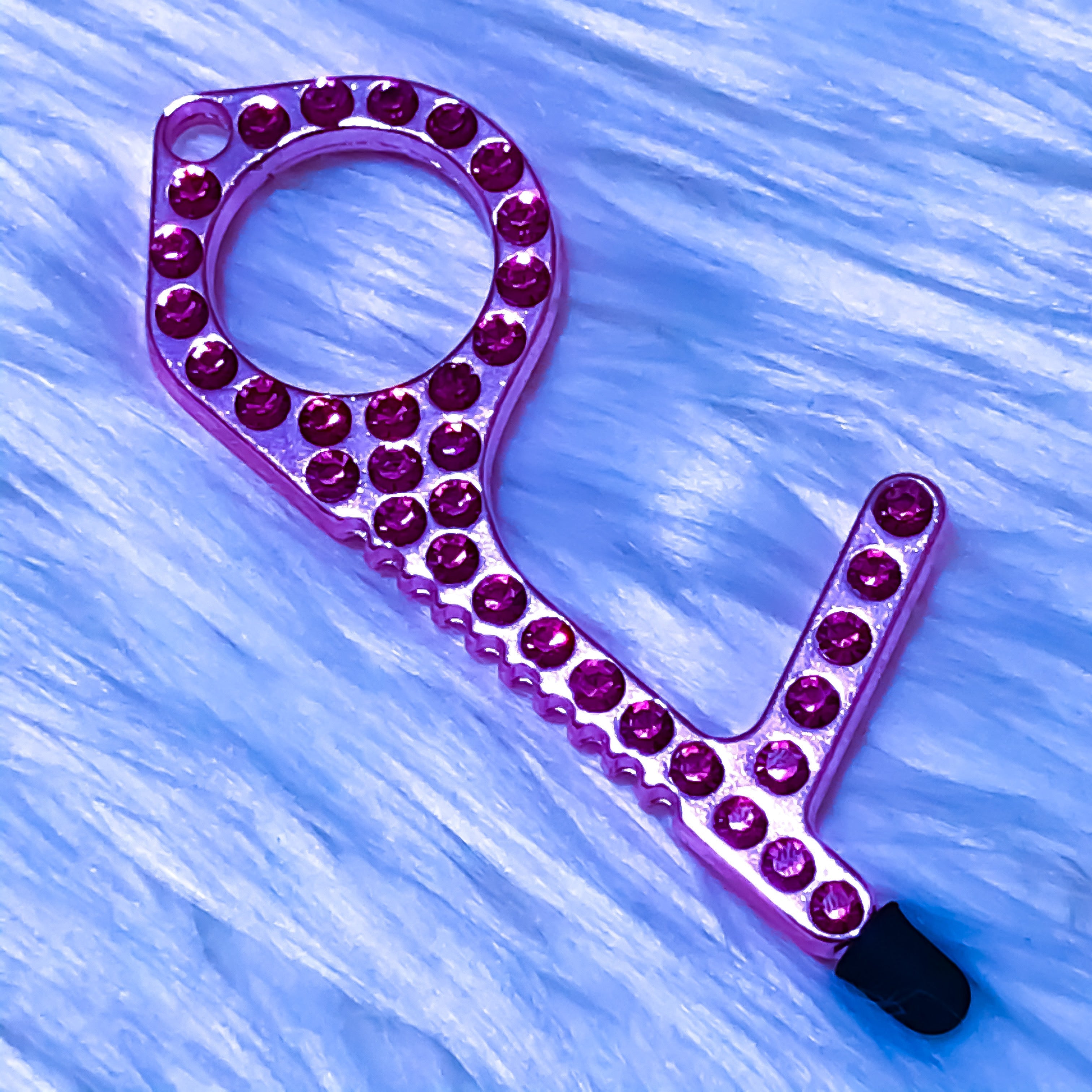 Product Description Sani-key is a contactless safety tool which can avoid exposure and transmissions of germs Rhinestones trimmed Works on most surfaces, touchscreens, door handles, buttons, etc.