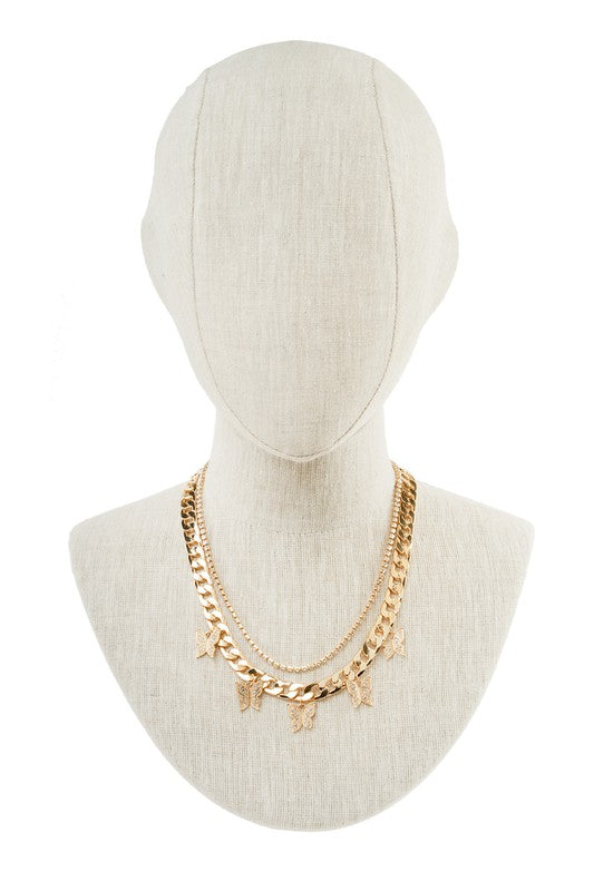 Product Description Accessorize any outfit with this trendy necklace Metal Chain Necklace With Butterfly Charms And Thin Rhinestone Necklace Set of 2 11" (L)