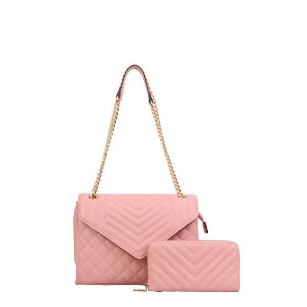 Product Description This gorgeous handbag is a must have. Featuring a 2 in 1 v quilt stitch and envelope design crossbody bag with matching wallet set, smooth textured PU Magnetic Flap With Zipper Open Closure, Inside Roomy Interior, 11 (L) x 4 (D) x 8 (H) Inches