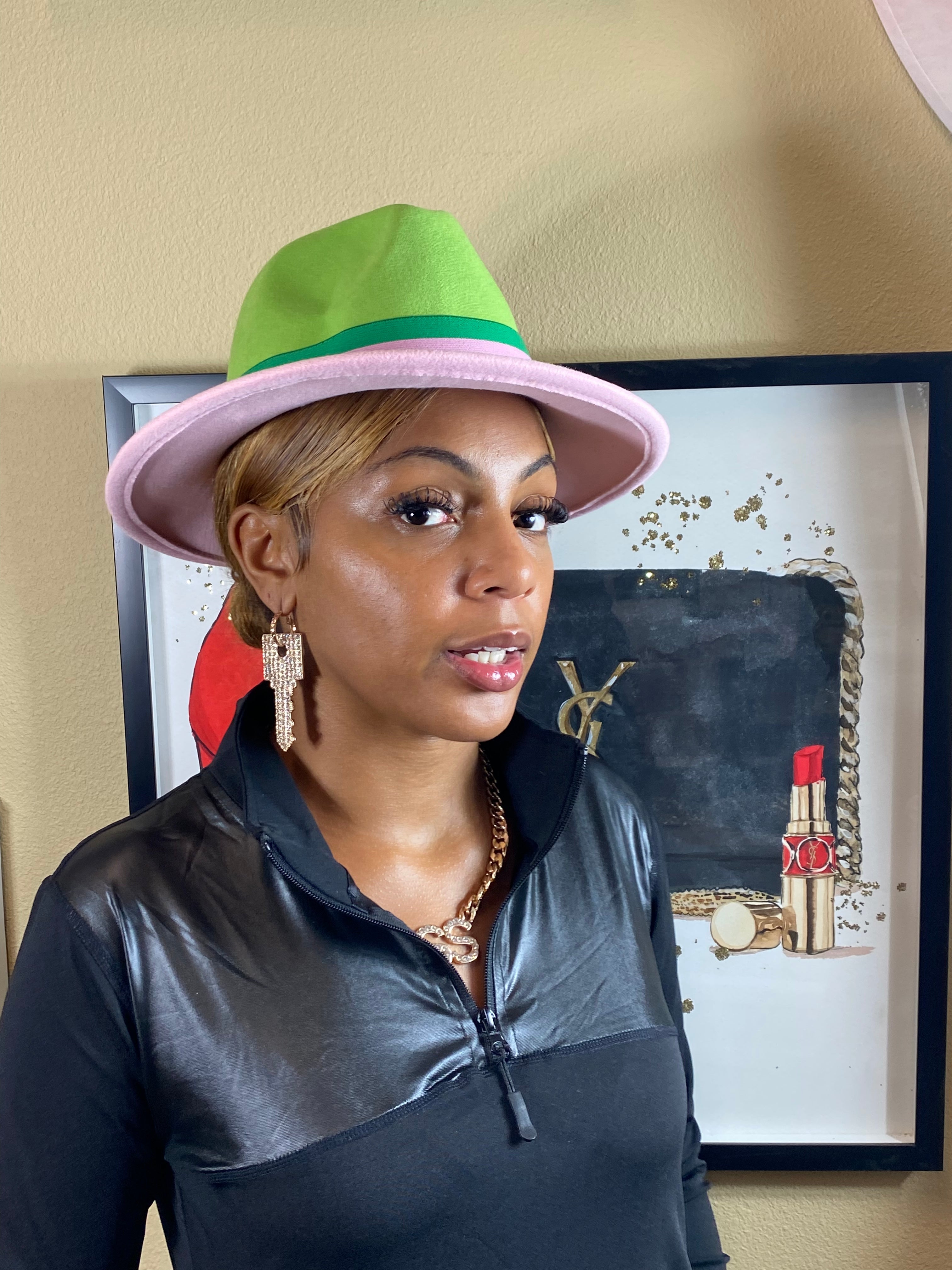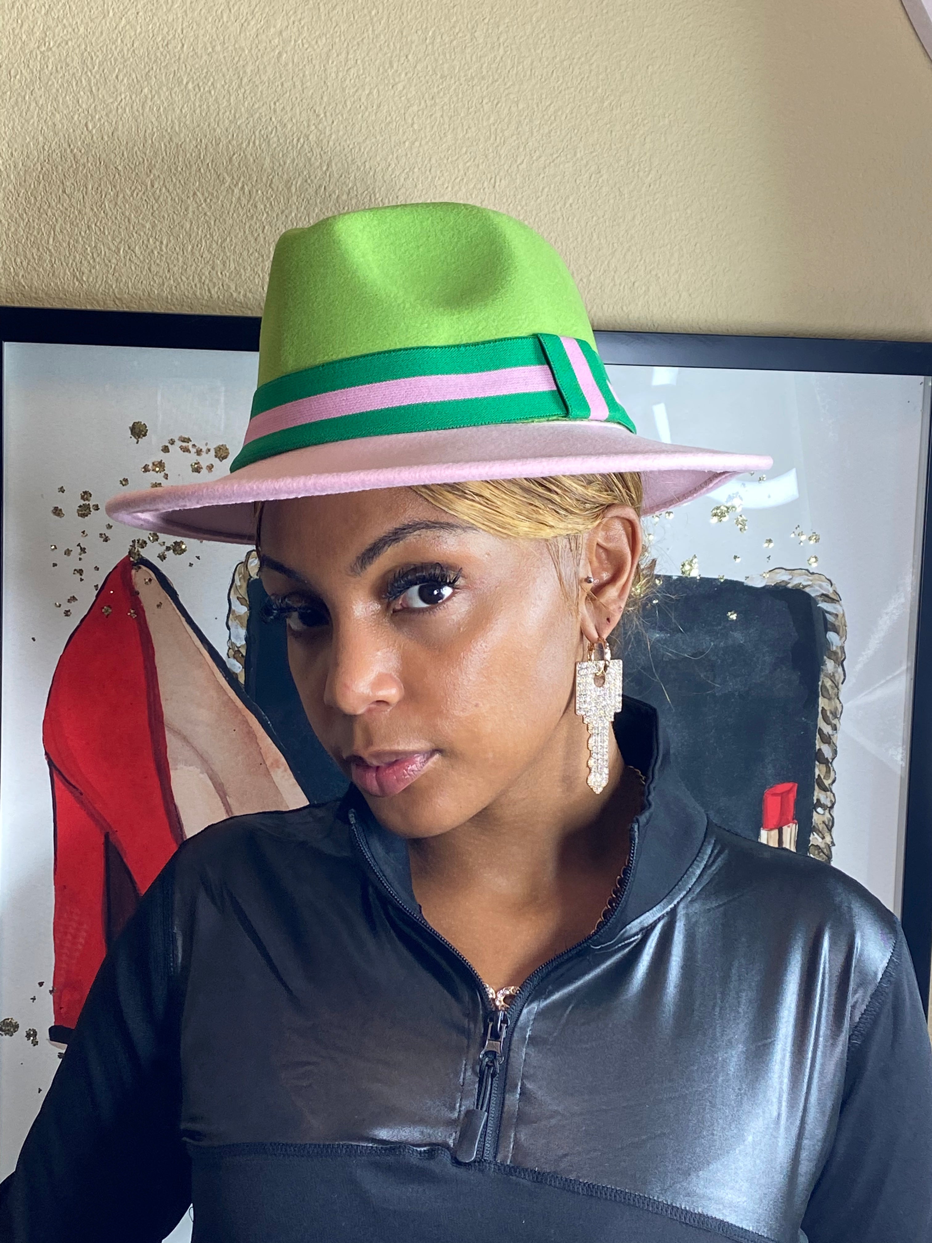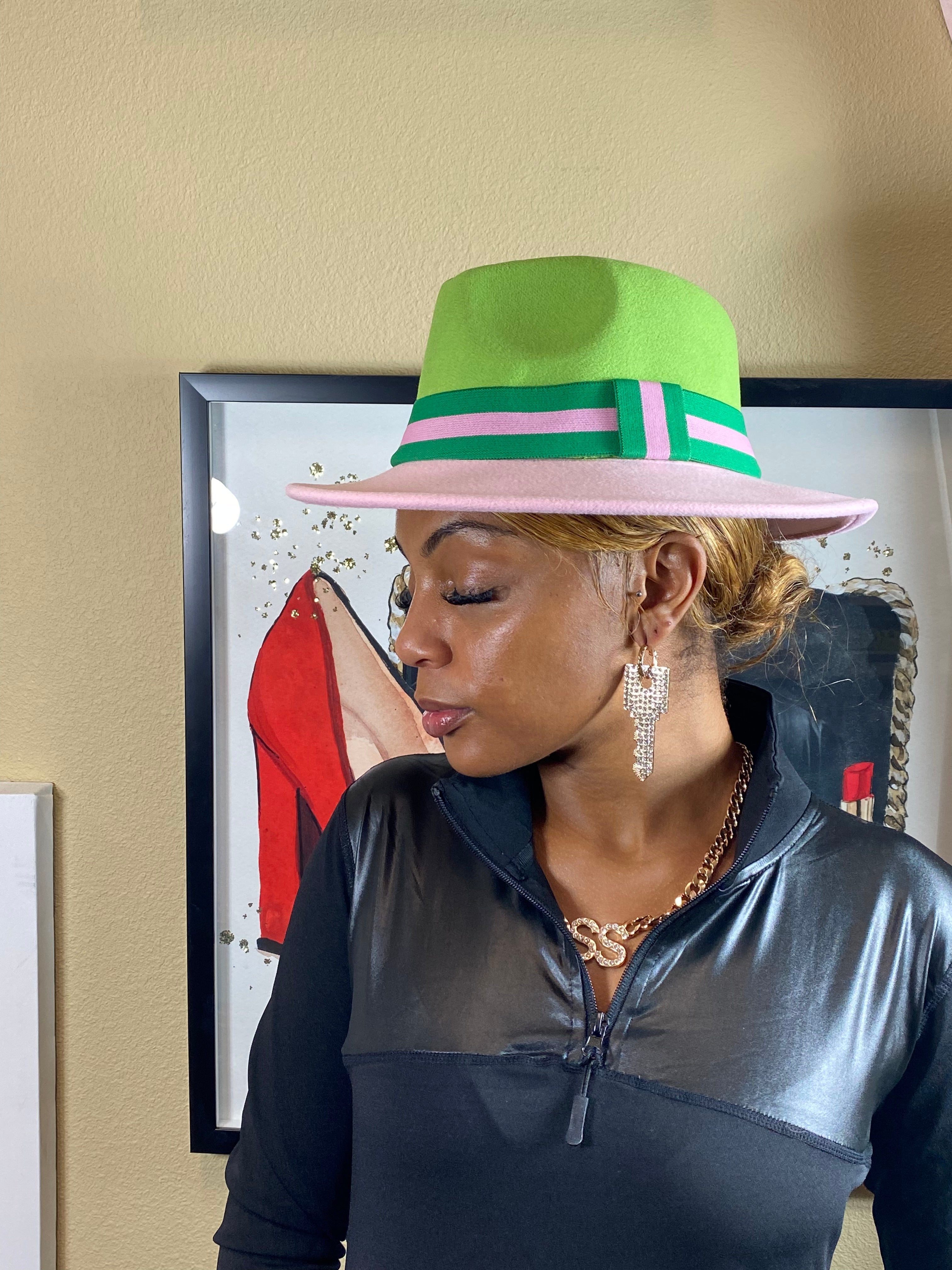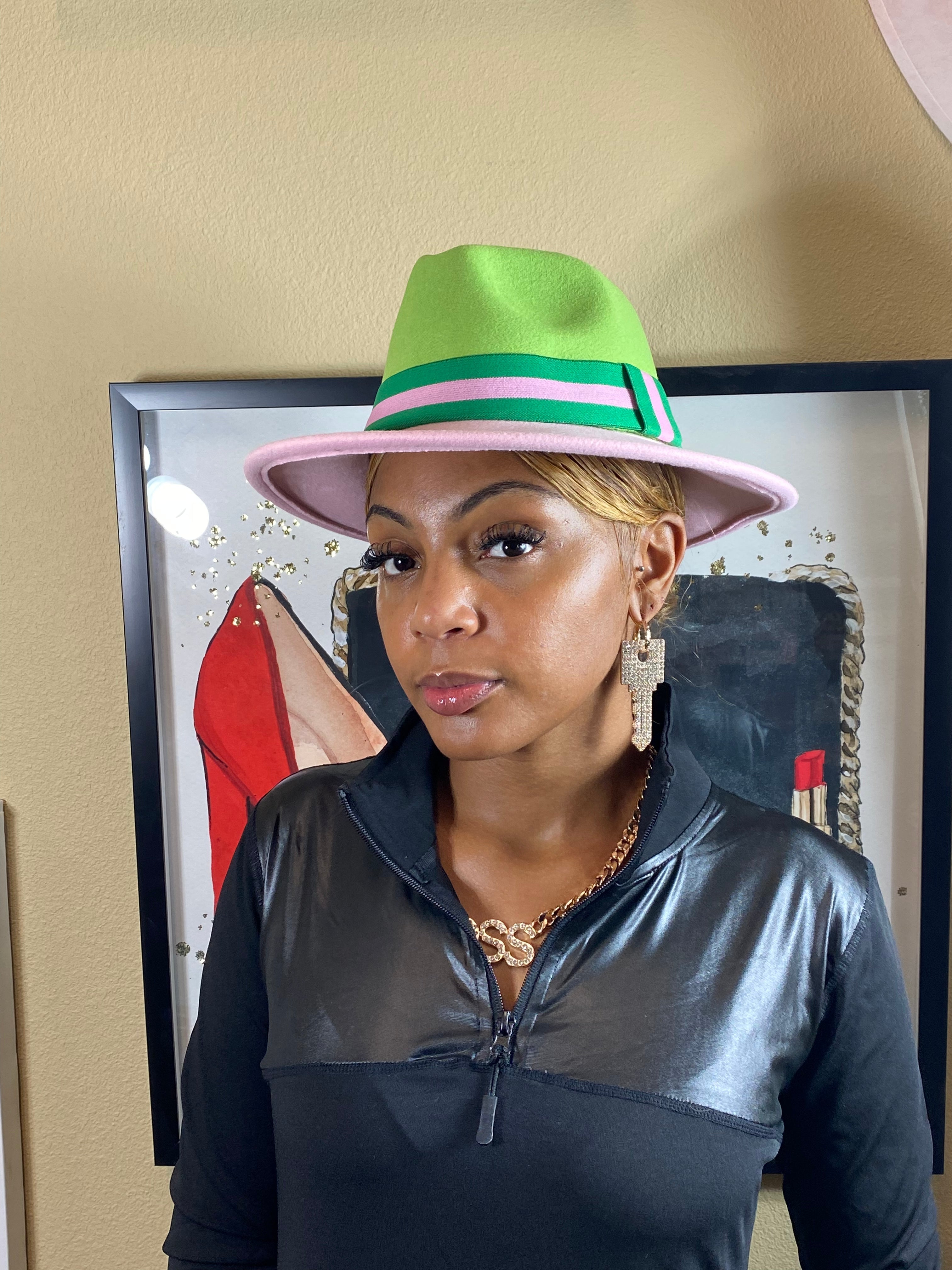 Add to Cart Pink And Green Band Fedora MSRP: Was: Now: $34.99 Accessorize any outfit with our most loved fashion fedora. Make heads turn in these. Faux Wool Hat W…
